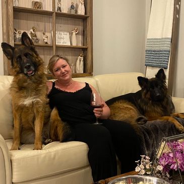 I've spent my life surrounded by amazing animals; dogs, horses, cats, cows, pigs, rabbits, birds, fish, snakes and hamsters just to name a few. My parents had a hard time keeping me out of the barns when I was little, I couldn't resist an opportunity to meet and spend time with any animal. I owned and cared for my own horse for 15 years until he passed, a dream come true for this equine lover. My horse was raised alongside my own children who spent their childhood frequenting the barn and riding with me, one of the best gifts I could give them. When Brian and I lost our 2 collies 4 years ago, we wanted to fill the emptiness in our hearts with a new fulfilling challenge, so we soon found ourselves bringing two German Shepherds home: Bruce and Larry. We thoroughly enjoy our boys and spend countless hours training, exercising, and stimulating both to raise them into fine-mannered confident pups. My appreciation and love for these beautiful spirits have grown my connection to them throughout my life.
